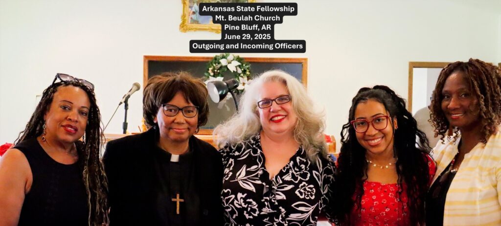 The Arkansas State Fellowship meets on 5th Sundays, except in December. Member congregations are Central Christian in Russellville, Cephas Chapel in Wrightsville, Cross Street in Little Rock, Mount Beulah in Pine Bluff, and Mount Sinai in North Little Rock. The host church provides a meal before the 3 p.m. worship service. Each church renders two musical selections.