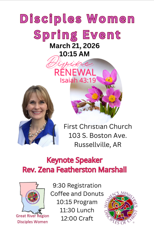 The Disciples Women in Louisiana will meet for 90 minutes on Satuday, March 14, 2026. The exact time as not been determined. The link to join this virtual gathering is above.